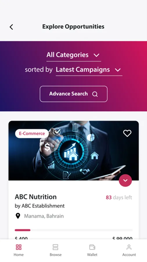 3- Browse opportunities that match your risk appetite and sector preferences.