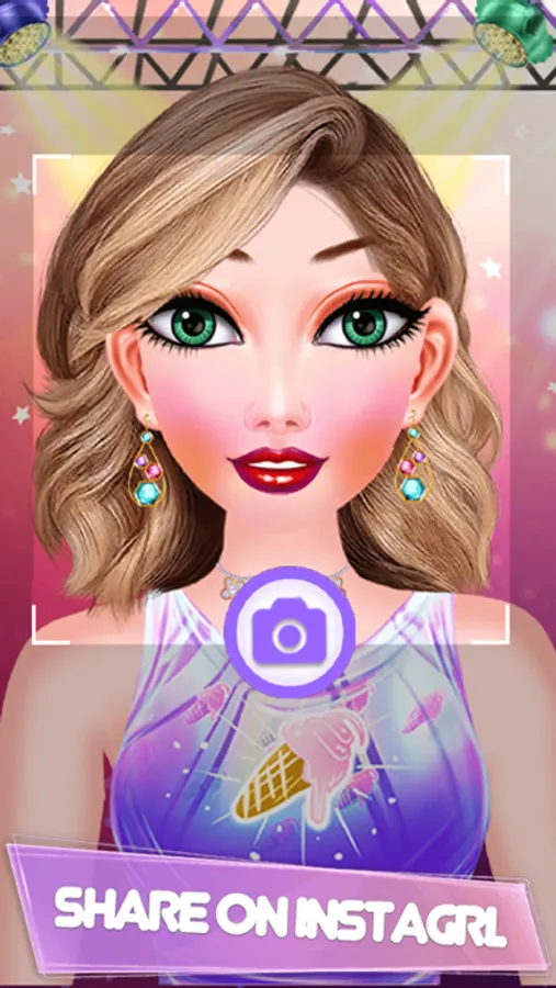 it’s up to you to decide which ones to apply! Add beautiful wigs, hats, jewelry and accessories to complete the look. When you have finished creating the most fabulous makeup look, you can share your work online and compare your creations with your friends on Facebook. You can also download your favorite makeovers to your phone