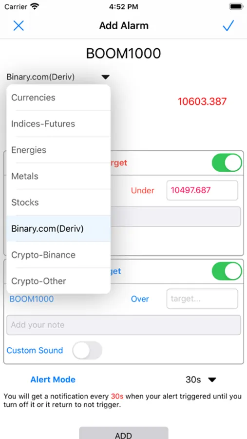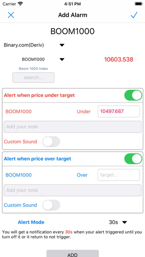 - Custom alert sound.
