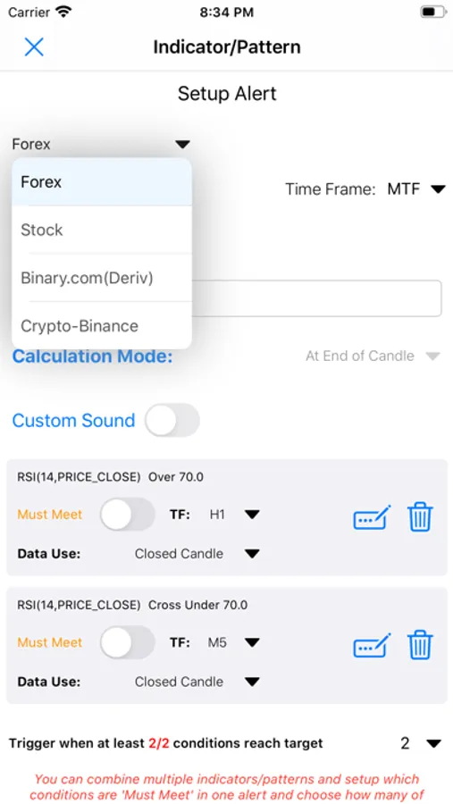 Forex , Bitcoin/Cryptocurrencies, Stock, Synthetic indices market is open 24 hours a day,if you're trader,you will not be able to keep up with all the continuous fluctuations of the market.With this app you won't have to worry about it because all forex rates and your custom indicators/patterns signal will be notified promptly to you.