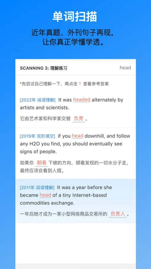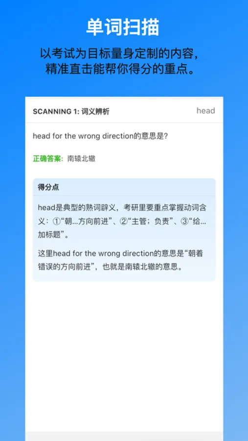 我们精心挑选了历年考研真题中出现频率最高,最影响理解,放在语境中最难一下明白其意思的500个重点单词,用更有趣、更有效的方式让你一网扫尽。以考试为目标而量身定制的学习内容,精准直击能帮你得分的重点,让你轻松学懂学透,在考试中事半功倍。