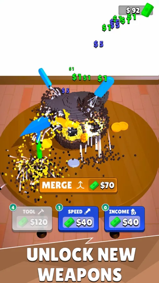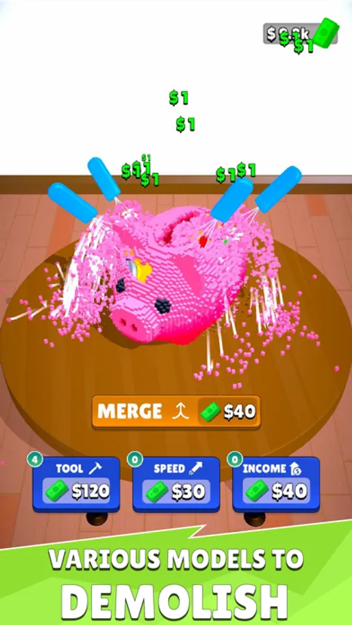 You can unlock new Shapes of saving money banks. It's a lot of fun when you break the Piggy-type saving banks and get money. How much can you earn?