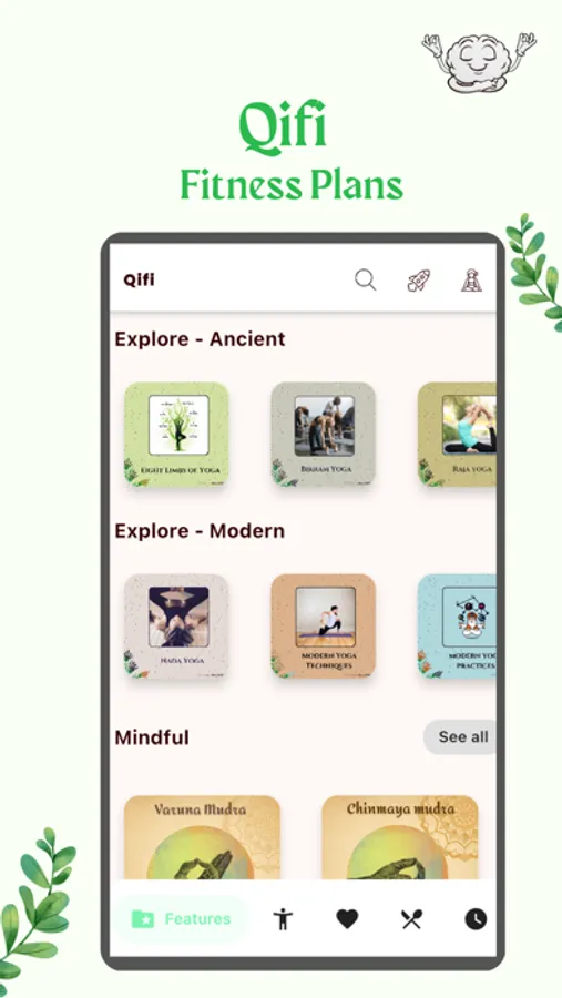 Qifi App offers customized goal-based Yoga, Fitness plans, Diet Plans, Nutrition Programs & Explore spirituality. The app also offers easy-to-do yoga asanas as illustrations, natural foods, meditation, pranayamas, chakras, and nutrition to maintain a healthy balance in a modern lifestyle.