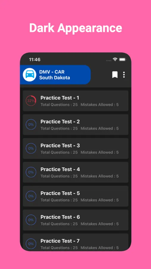 The app includes a variety of practice questions for the DMV Permit Test exam. These questions are based on the South Dakota DMV handbook Users can track their progress and identify areas where they need more practice, allowing them to focus their studying on the areas where they need the most improvement.