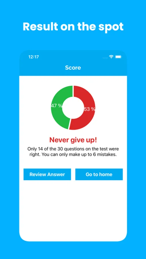 - Result on-the-spot with score