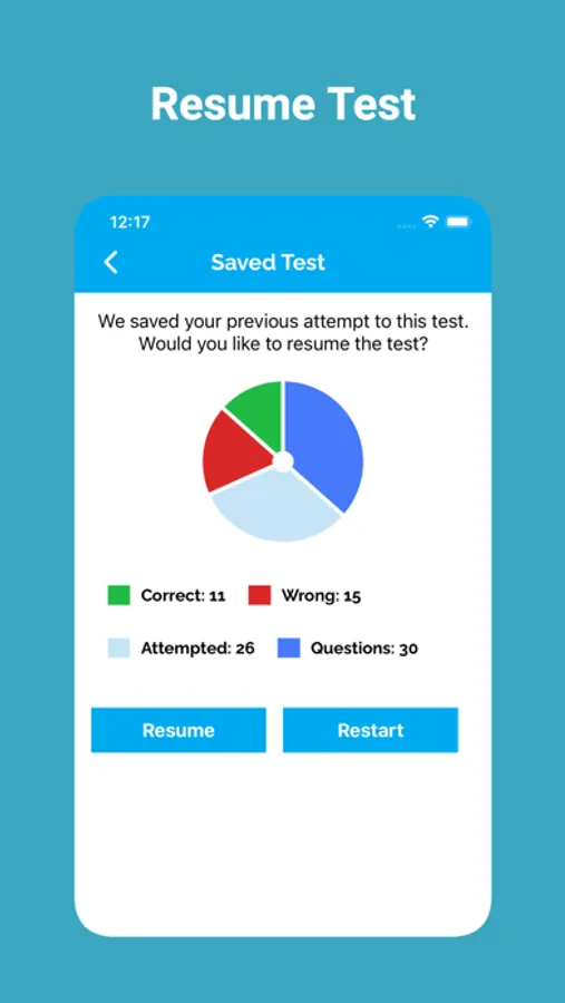 App tracks the users completed practice tests. The app tracks their progress, allowing them to identify areas for improvement and track their overall progress.