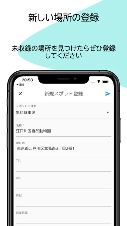 便利に車中泊できる場所や、逆に車中泊してはいけない場所、しない方が良い場所といった情報を車中泊を愛する皆さんの力で集約し、誰もが安心して車中泊をできるようにするアプリです。