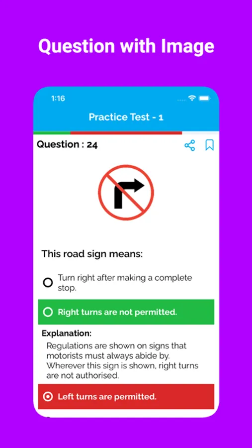 The app includes a variety of practice questions for the DMV Permit Test exam. These questions are based on the Texas DMV handbook Users can track their progress and identify areas where they need more practice, allowing them to focus their studying on the areas where they need the most improvement.
