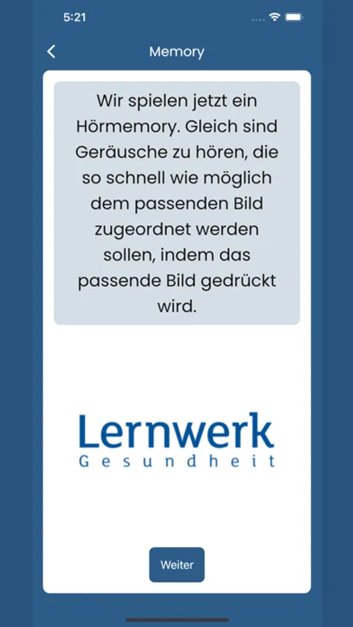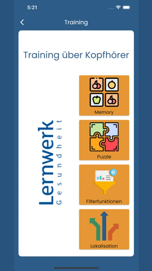 Das Lernwerk-Hörtraining ist eine digitale Anwendung in Form einer App und beinhaltet Trainingsmodule zum trainieren und therapieren von Hörstörungen (Störungen des dichotischen Hörens, Filterfunktionen, Störung der Sprachverarbeitung und -fokussierung). Diese App dient zur Unterstützung und Intensivierung eines Hörtrainings bei AVWs, Hörentwöhnung und Hyperakusis.