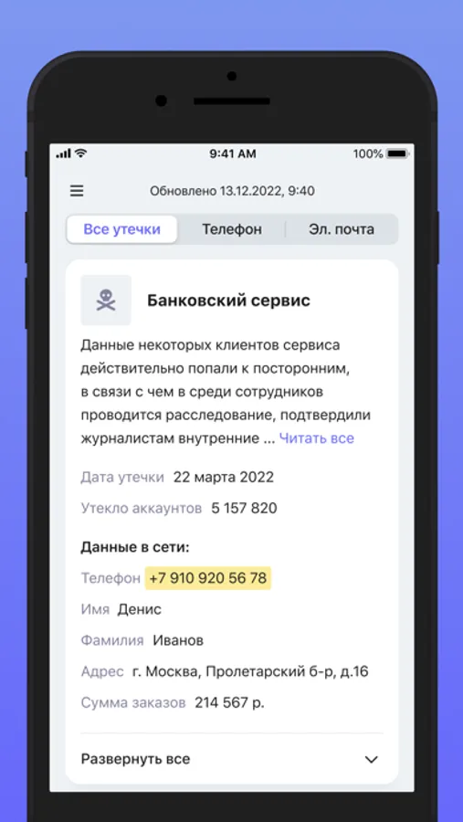 Check if your email or phone is in a data breach. Subscribe to be the first to know when your data leaks.