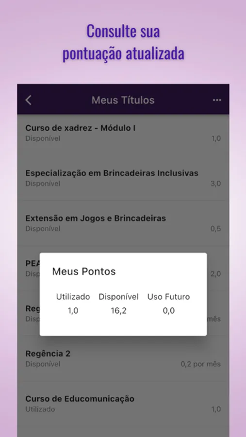 - Cadastre seus títulos e acompanhe sua evolução funcional.