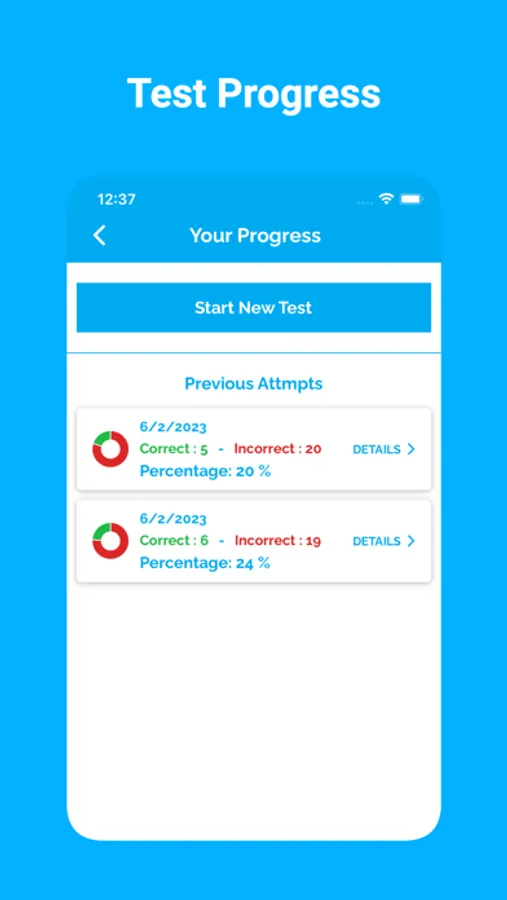 App tracks the users completed practice tests. The app tracks their progress, allowing them to identify areas for improvement and track their overall progress.