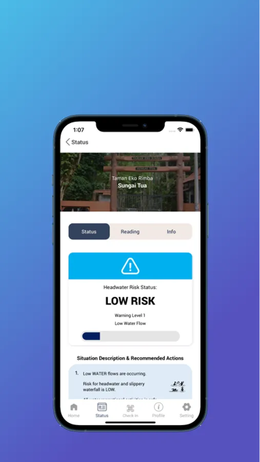 Enjoy your trip to Taman Eko Rimba with our app and stay updated with the current head water risk status for your safety!