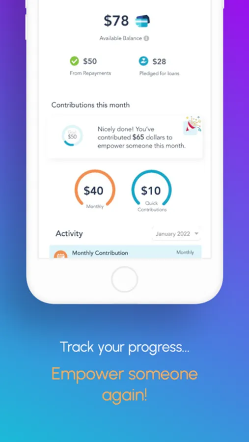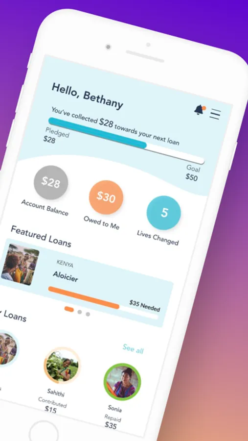 The ShareChange app shows you who your funds are going to and how they can help. You'll receive alerts as recipients succeed and repay their credits.