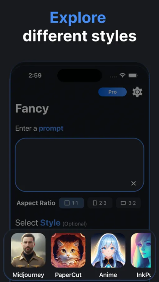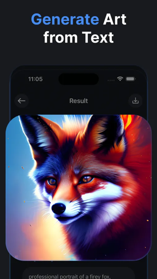 Unleash the power of your imagination with our AI art generation app. Bring your wildest ideas to life by describing the scene, object or theme you would like to see and let our advanced AI technology create a unique and personalized masterpiece just for you.