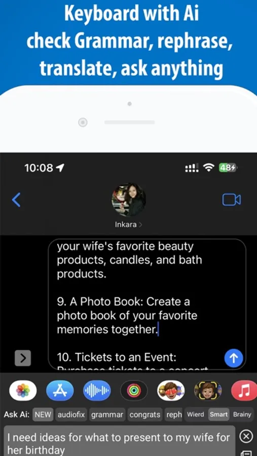 # Advanced AI keyboard not only helps you check grammar and sentence structure but also allows you to rephrase your writing to make it more professional.