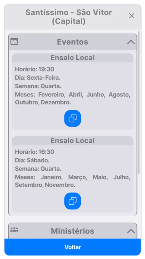 Very useful smartphone application for millions of musicians of world, to know where the musical events of the Christian Congregation in Brazil, Rio de janeiro, Brazil are being held.