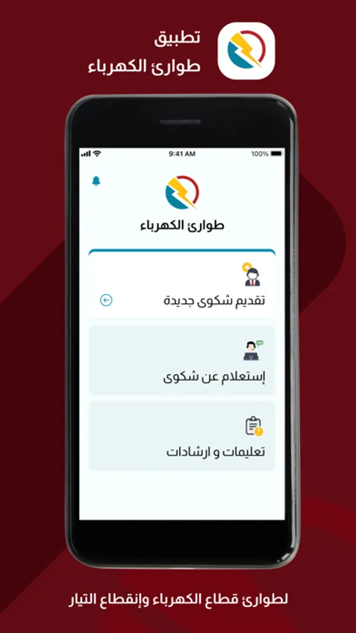 تطبيق طوارئ الكهرباء التابع للمنصة الموحدة لخدمات الكهرباء للإبلاغ اللحظي والإستجابة السريعة لطوارئ خدمة قطاع الكهرباء وانقطاع التيار لضمان التدخل الفني والرد على الاستفسارات