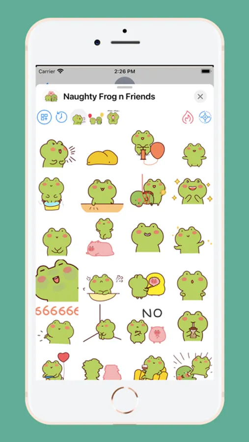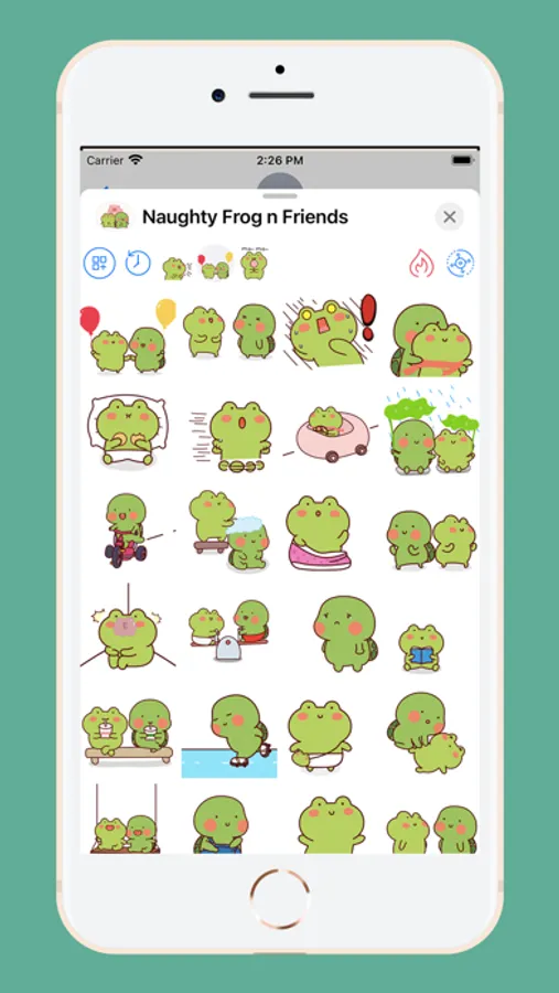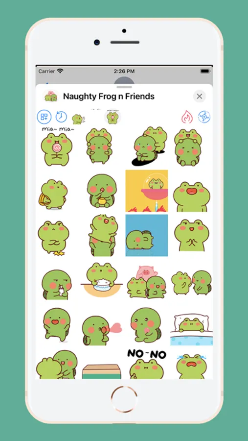 ● Super set of 72 animated stickers of the Naughty Frog n Friends!