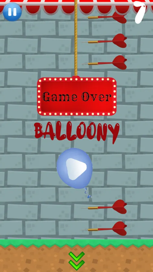 Balloony is an infinite scrolling 2D game filled with obstacles along the journey. As a helium Balloon, you naturally float UP. Simply tap on the screen in order to tug yourself down. Your goal is to go as far as you can without getting popped by the darts as they come. To dodge them tug yourself down by tapping on the screen or you can use the boost. The boost is the green arrow towards the bottom of the screen which will pull you down much further. Have fun playing!