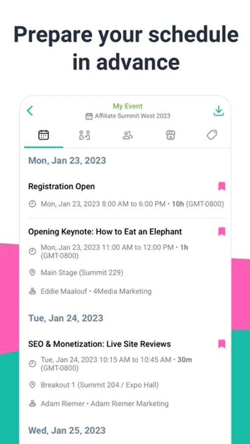 Go ahead and get to know the platform so you can make the most of it. You can connect with fellow attendees, book meetings, register for sessions and add these to your personalized agenda, and see the full participants' list and exhibitor's profiles.