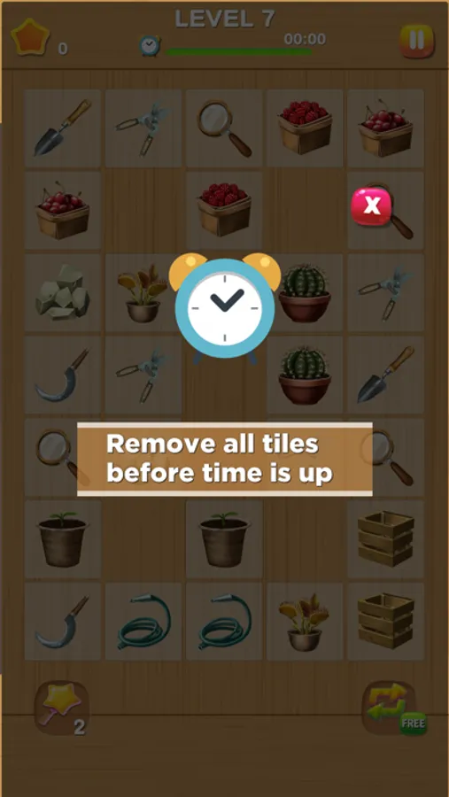 Match and remove all tiles before the timer runs out or the bomb explodes.