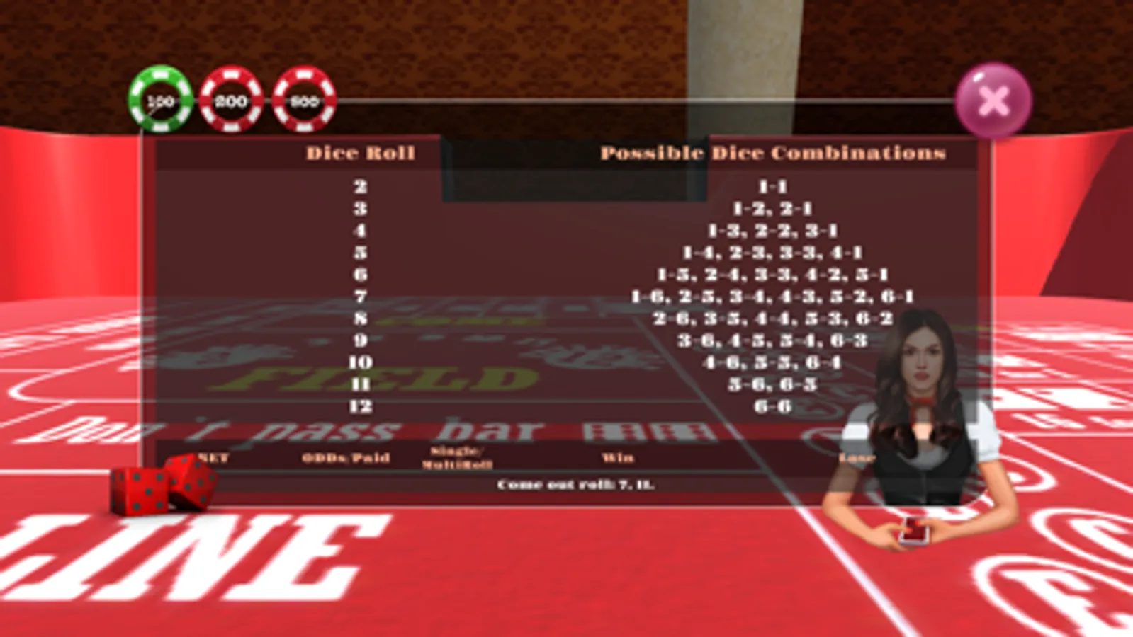 This is the emulator version of the game Craps