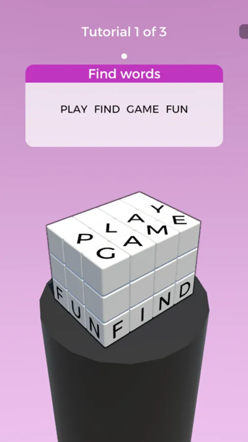 Simply swipe outside the cube to rotate it and slide cells to collect the word, it is just as easy!
