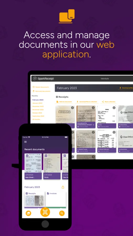 With SparkReceipt's web app, you can manage your documents easily when you have access to any laptop or desktop computer. This gives you even more flexibility and convenience in managing your business documents.
