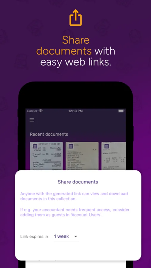 Sharing your receipts with your accountant for easy bookkeeping has never been simpler with SparkReceipt. You can easily share your receipts with your accountant, ending the need to send receipts or documents via email attachments. SparkReceipt also believes in security and privacy – provide a time limit and the shared receipts will get hidden whenever you want them to.