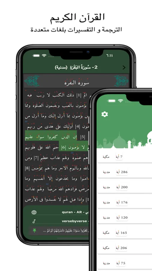 - تلاوة الآيات باصوات اشهر القراء الى عدة لغات