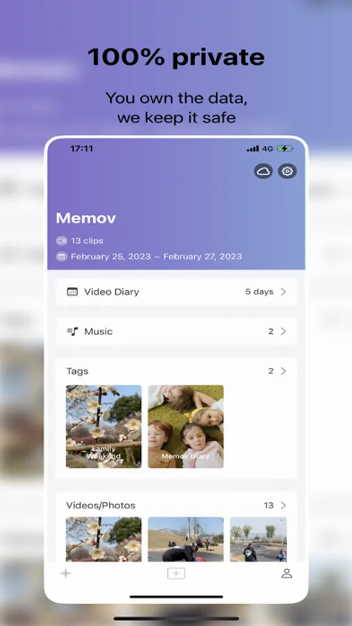 Simply select a short clip from the album or camera, and then automatically organize it through tags and time, and generate a video of memories