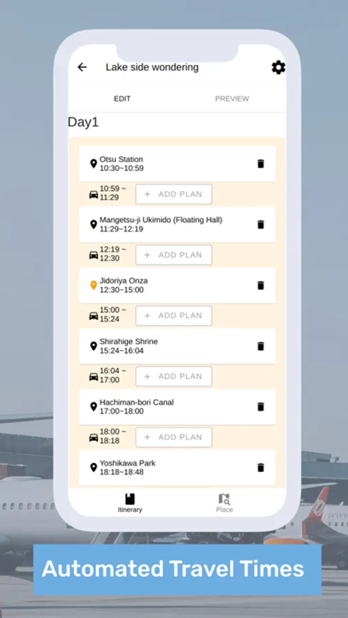 Travel plans often change on the go! No need to manually adjust the times of other plans when you change one; the app does it for you!