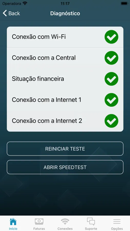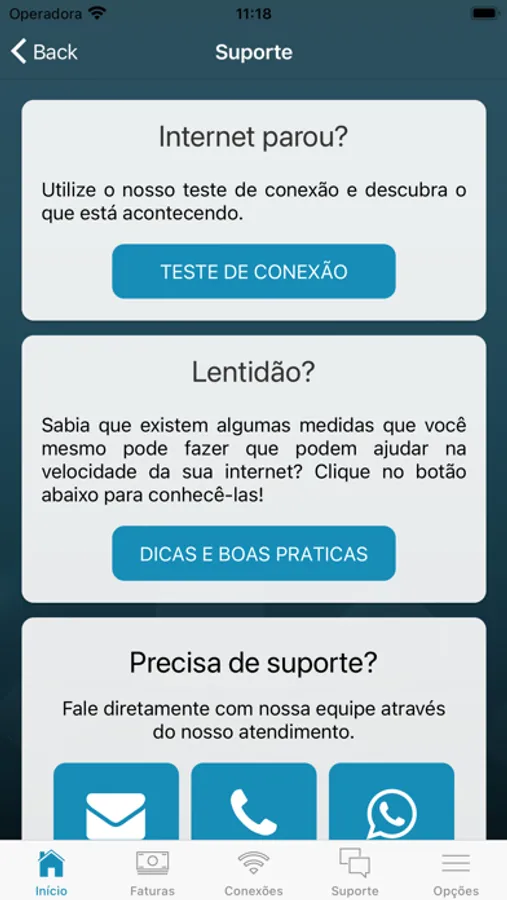 • Realização testes de conexão e velocidade;