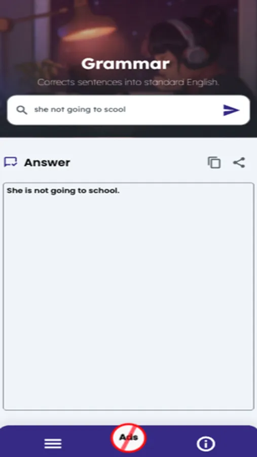 - Grammar correction: Corrects sentences into standard English.