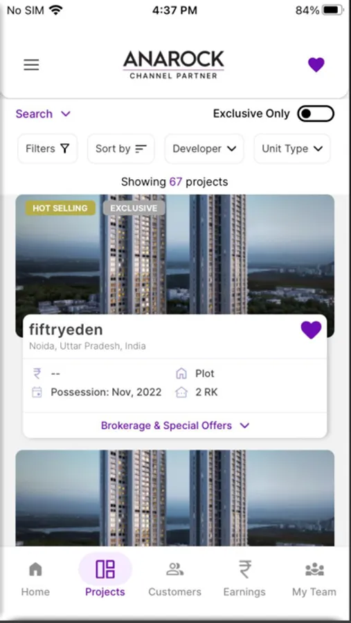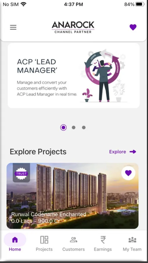 A B2B app for channel partners to get insights into the latest projects nearby, track leads, and manage brokerages.