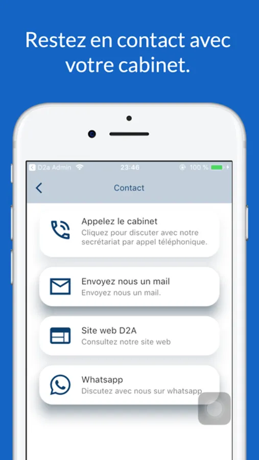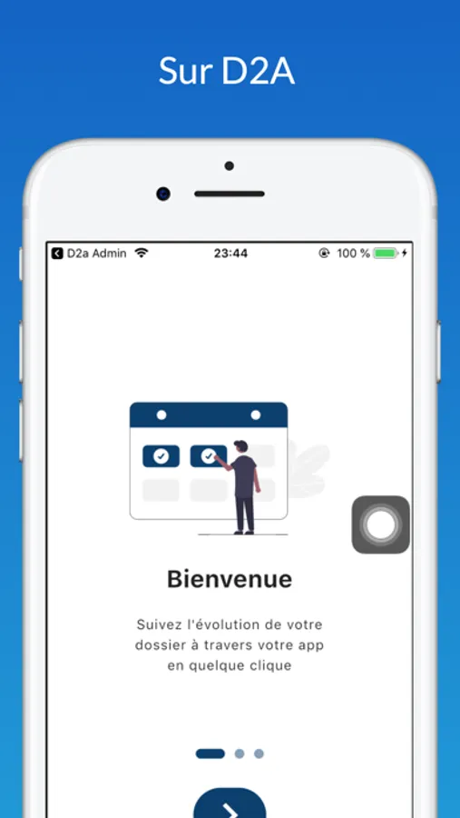 Application client de la société civile professionnelle d'avocats D2A destinée au suivi de dossier, les dates de renvoi d'audience et les prises de rendez-vous.