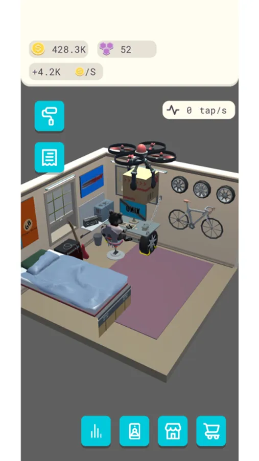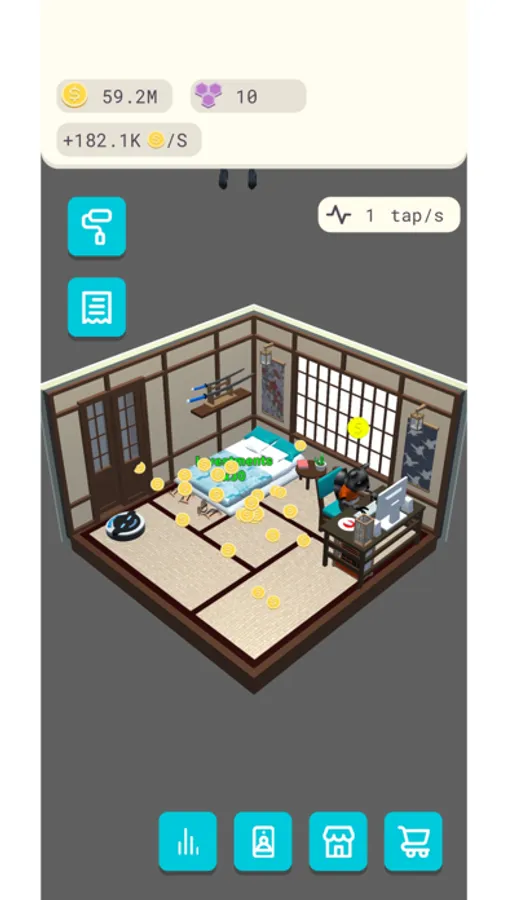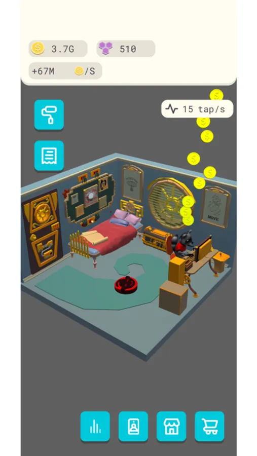 Room Idle clicker it's a unique way of building your room by collecting items and making coins becoming the richest roomate ever! so much fun into one game!