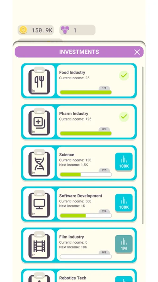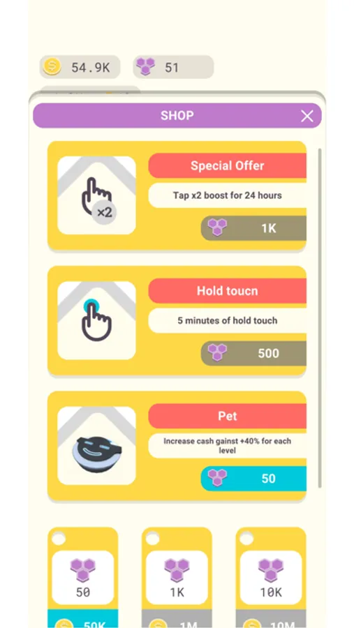 The gameplay is quite easy, you have to click on the screen to make the first coins, after that you can buy power ups and make business and wait to make even more money!