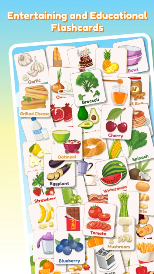 Flashcards teaching method is the best for babies, toddlers, and children allowing them to learn at their own pace. It is a fun and educational game. Your kid will learn everyday words while having fun. Play and learn together with your toddler.