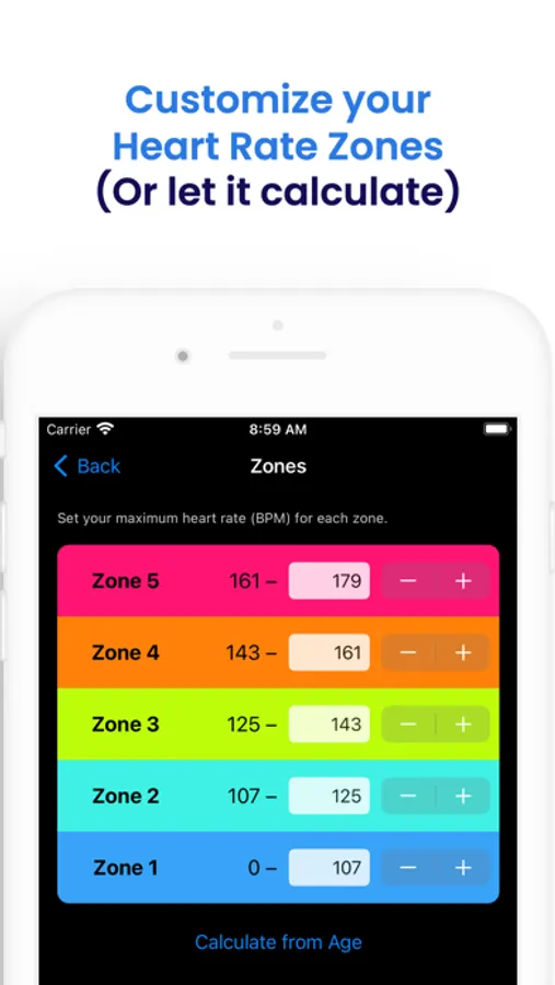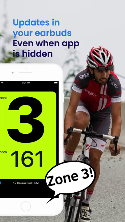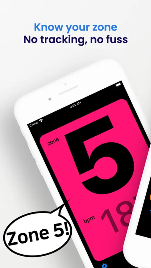 Zone training made simple. Hear your heart rate zone changes announced out loud while you run or bike. Or read your zone from across the room while you lift or do yoga. No accounts, no tracking, no premium features to unlock. Use alongside Strava, MapMyRun, or other fitness apps.