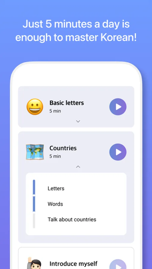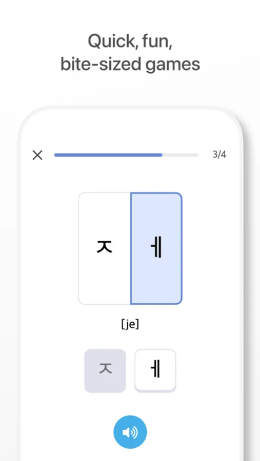 No need to worry about how to learn Korean. From your name to words and daily conversations, you can naturally pick up on Korean by quick, fun, bite-sized games and efficient curriculum of BB.