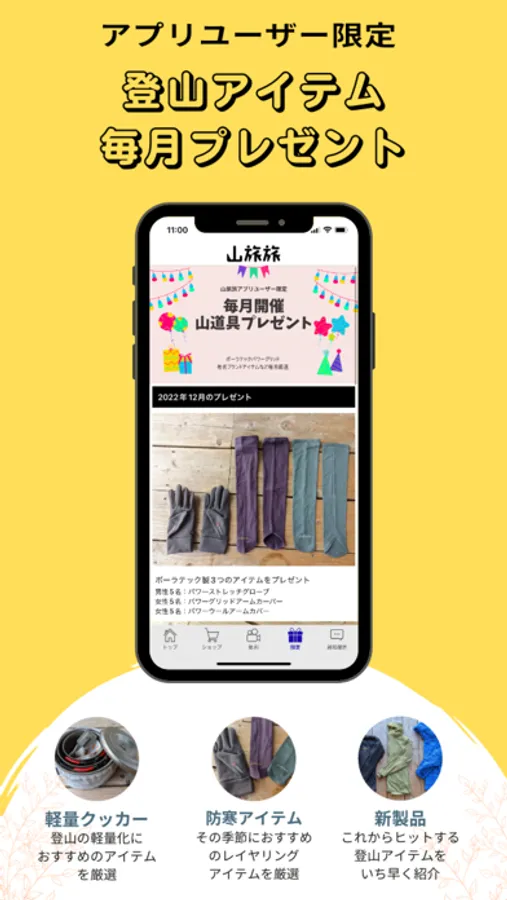 ・アプリ限定で開催する登山アイテムのプレゼント抽選