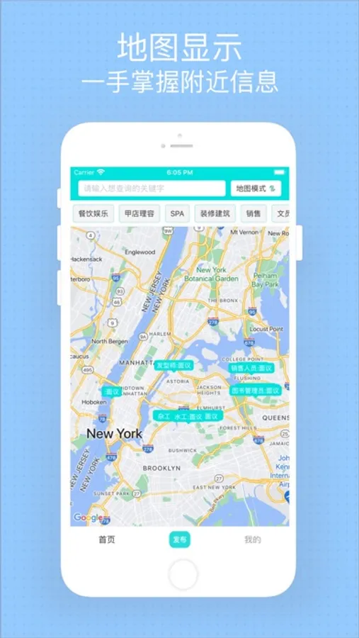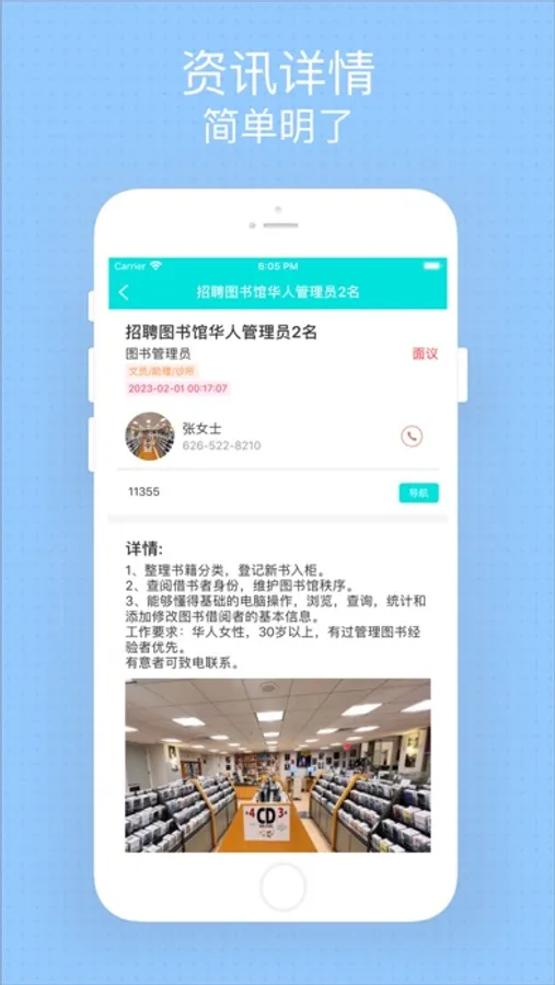每天更新大量的招聘信息,包括各种行业和职能的职位。还提供许多方便的功能,例如,职位搜索,地图定位意向的工作区域,在地图中可以一目了然的看到各种招聘岗位,分布的位置,可以一键打电话与雇主联系或者发送短信息,还可以一键导航到招聘地址。