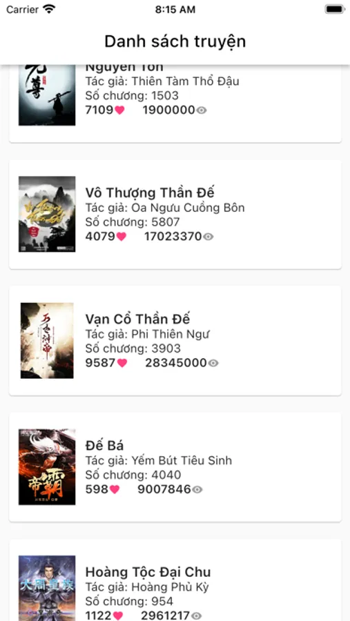 - Các truyện nổi bật: Mục thần ký, vạn cổ thần đế, nguyên tôn, đế bá, cửu tinh bá thể quyết, nhất niệm vĩnh hằng,...