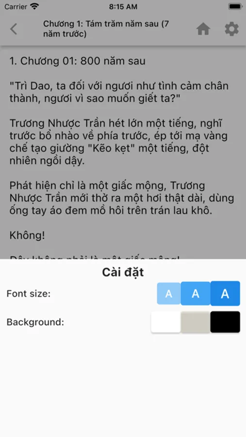 - Giao diện đơn giản dễ sử dụng, có thể chỉnh màu chữ, font chữ, màu nền … khi đọc truyện.