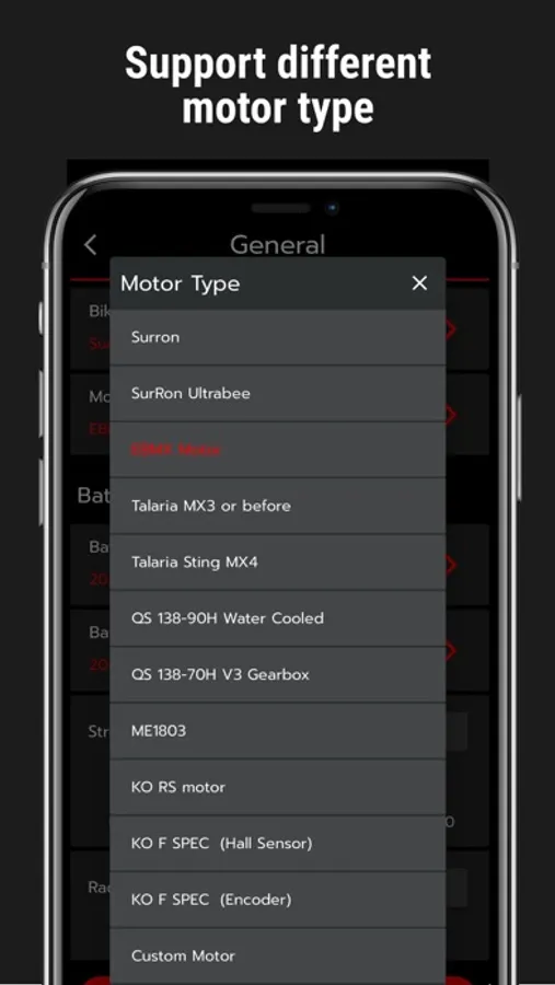 This mobile app is compatible with the EBMX X-9000 motor controller manufactured and distributed by EBMX and affiliated EBMX dealers and is not compatible with any other manufactures controllers.