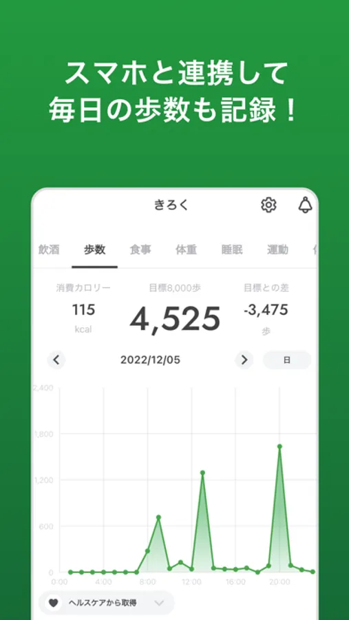 iPhone標準アプリである「ヘルスケア」とのデータ連携で歩数の自動入力が可能!
