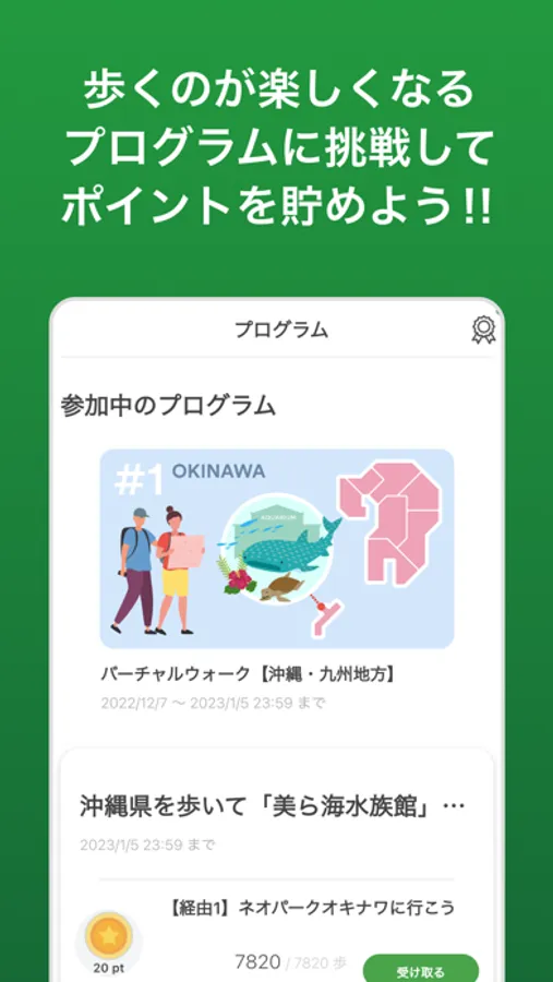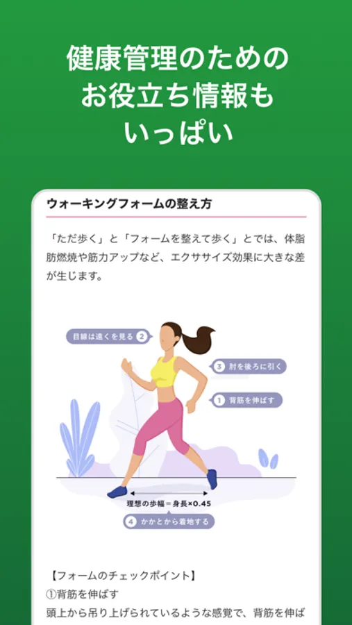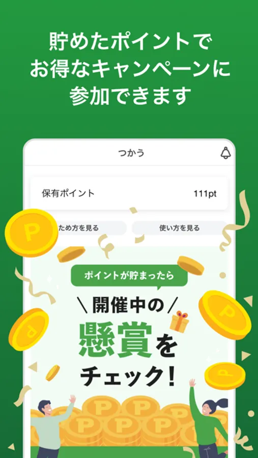 【歩数】スマホを持ち歩くだけで自動で歩数をカウント。歩くだけでもポイントがもらえるので目標歩数を楽しく目指せます。