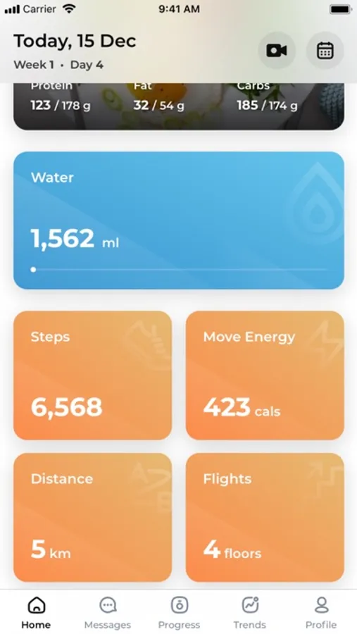 The app integrates with Apple Health to show your daily activity - distance, steps, active energy, and flights to help you better achieve your goals.